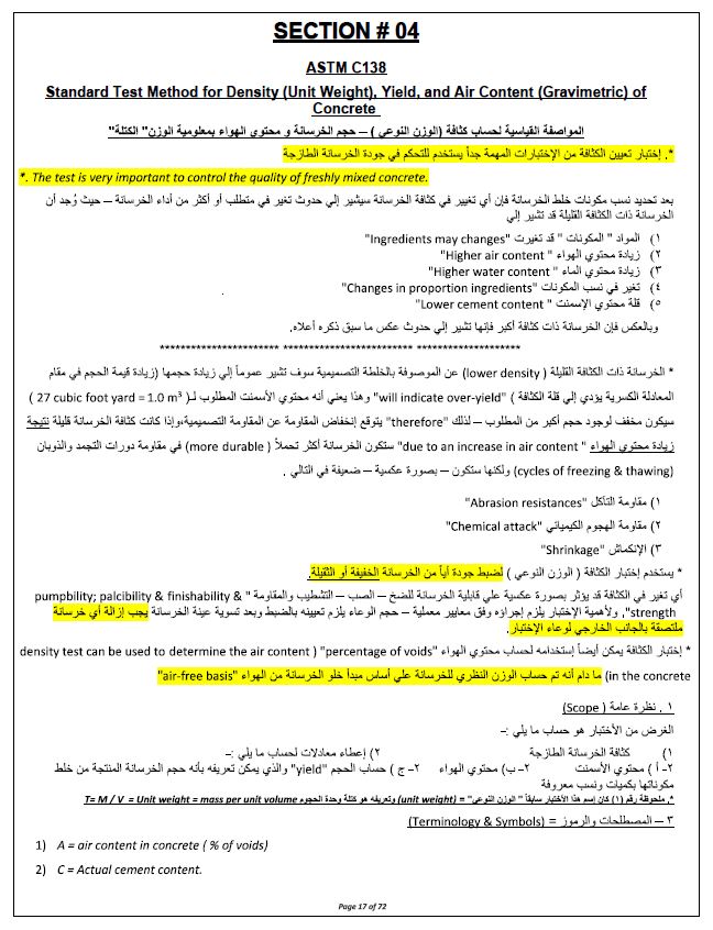اختبارات الاسمنت وتحديد خصائص العينة علوم الهندسة المدنية