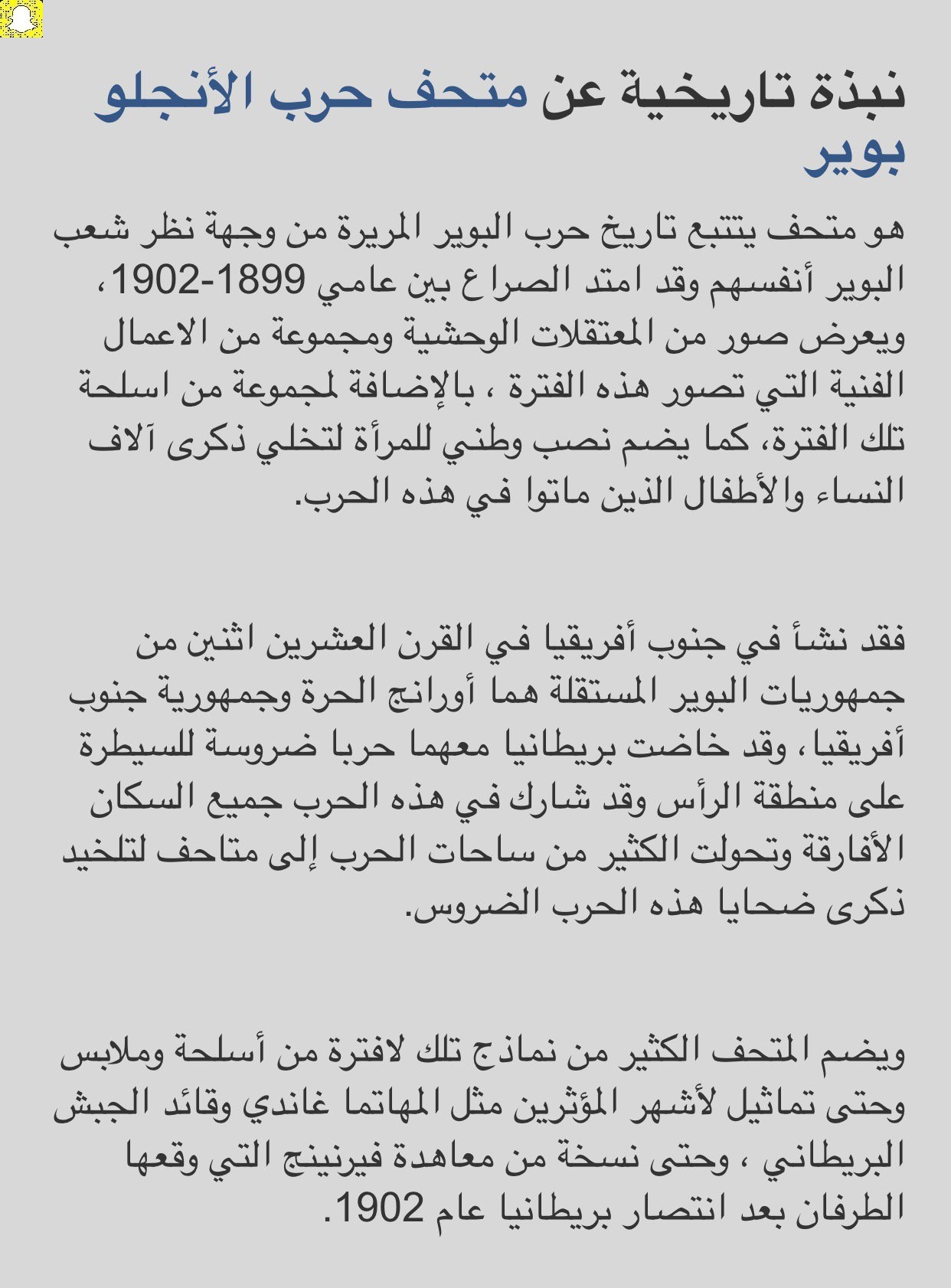 أرض الذكريات على تويتر متحف حرب الأنجلو بوير أحد المعالم البارزة في تاريخ جنوب أفريقيا ويتتبع تاريخ الحرب من وجهة نظر شعب البوير أنفسهم وقد امتد الصراع من1899 1902م Https T Co Hibbbzppss