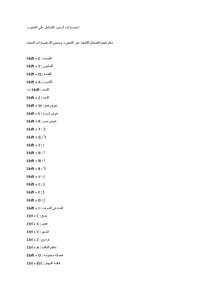 كل اختصارات الكيبورد لوحة المفاتيح وكتابة الحركات بالعربي وتشكيل الكلمات في خمس ورقات فقط