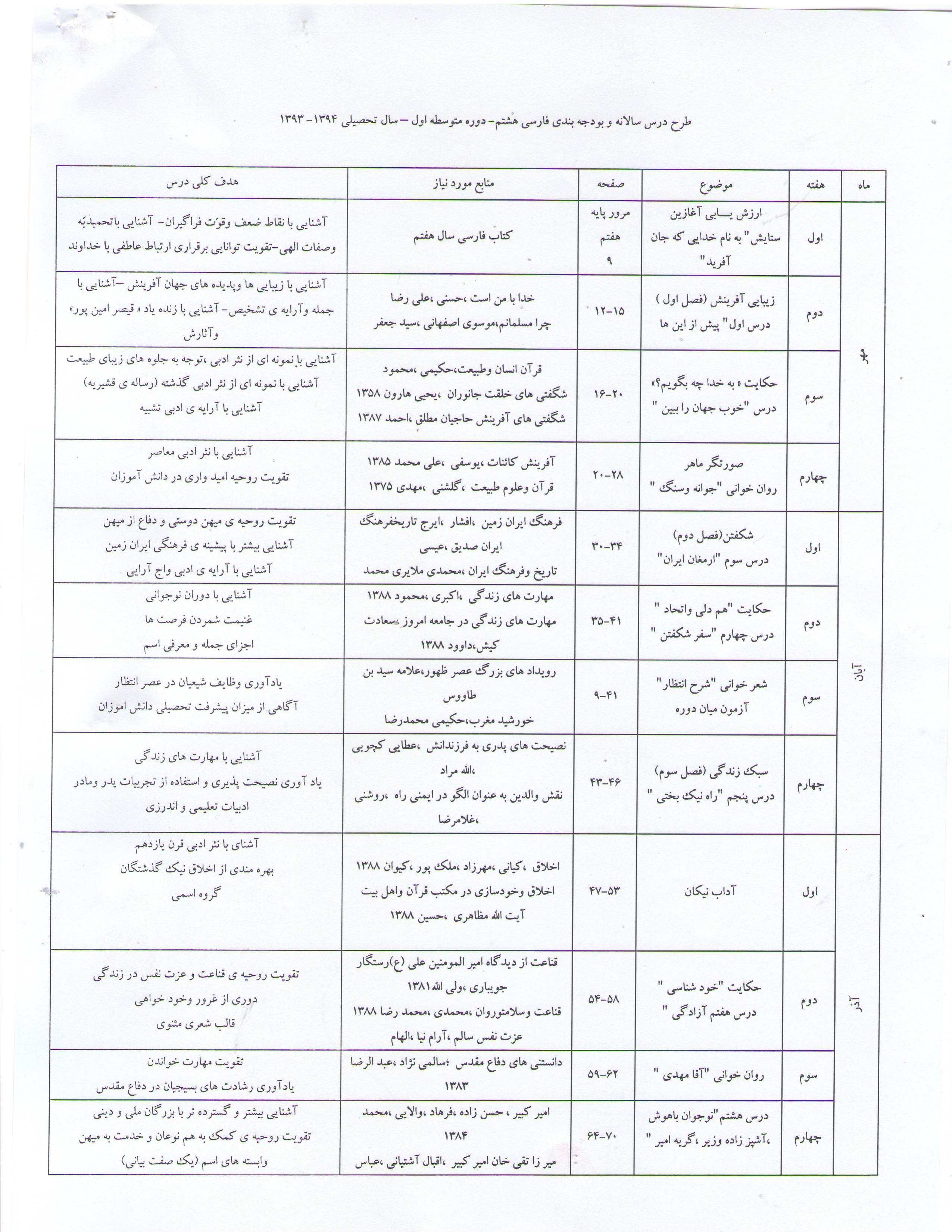 بودجه بندی و طرح درس سالانه فارسی هشتم مشق فارسی دوره اول متوسطه