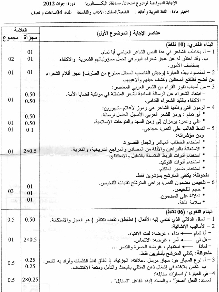 تصحيح بكالوريا شعبة أداب لغة عربية