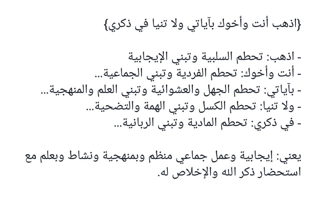 ضمى نجد Ar Twitter اذهب أنت وأخوك بآياتي ولا تنيا في ذكري لا ي ستعان في الأمور العظيمة بمثل مداومة الذكر