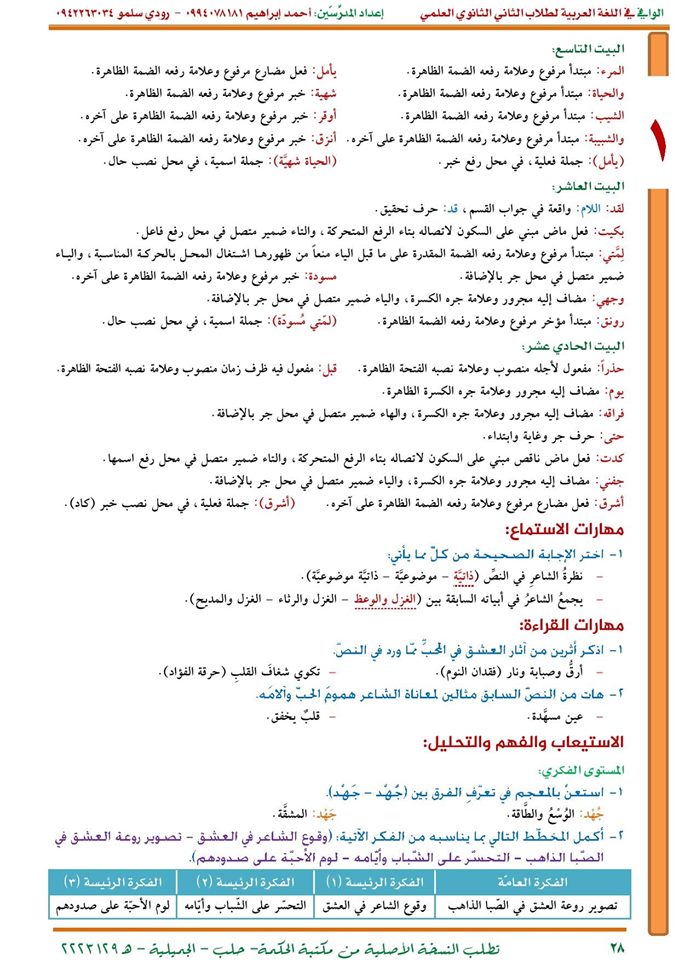 شرح قصيدة عبرات شاعر للصف الحادي عشر علمي ادبي