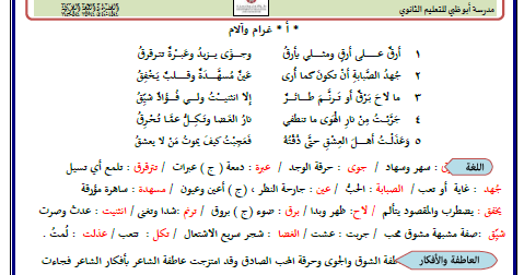 شرح وتحليل واجابات قصيدة ارق علي ارق في اللغة العربية للصف الثاني عشر الفصل الدراسي الاول