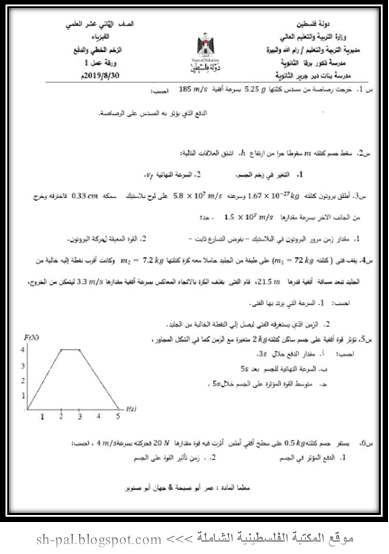 امتحان فيزياء الزخم والدفع الثاني لجنة مبحث الفيزياء مديرية رام الله والبيرة Facebook