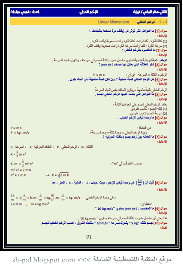 تدريبات محلولة في درس الزخم الخطي للصف الثاني عشر المكتبة الفلسطينية الشاملة