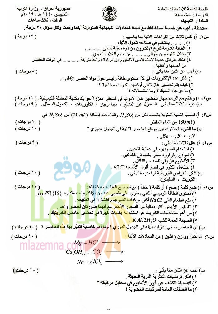 اسئلة كيمياء ثالث متوسط. اسئلة كيمياء ثالث متوسط دور اول 2018 وزاري 2018. اسئلة الامتحان التمهيدي الخارجي ثالث متوسط الدراسة. اسئلة كيمياء ثالث متوسط دور ثاني 2020 نصف السنة.