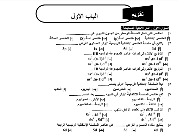 مذكرة اسئلة على الباب الاول كيمياء للصف مدرس دوت كوم