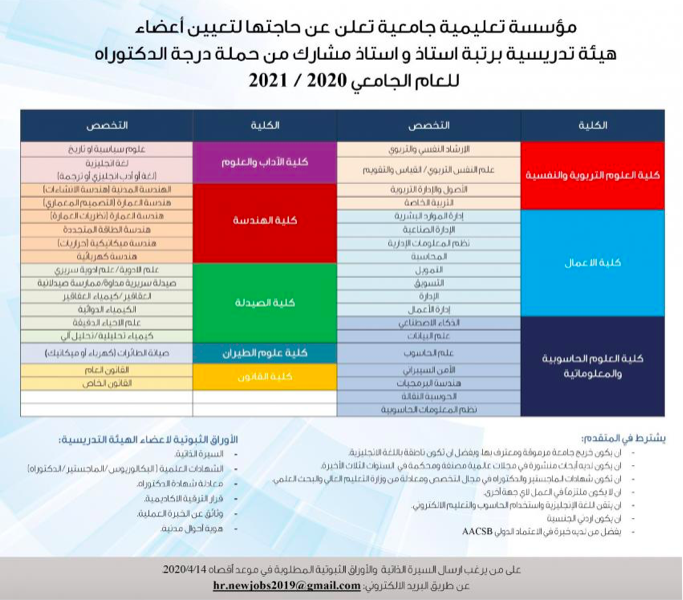 مؤسسة تعليمية جامعية تعلن عن حاجتها لتعيين أعضاء هيئة تدريس