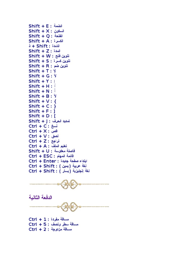 كل اختصارات الكيبورد لوحة المفاتيح وكتابة الحركات بالعربي وتشكيل الكلمات في خمس ورقات فقط