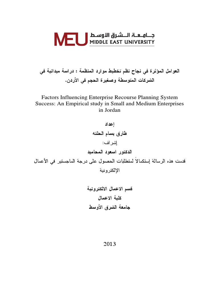 العوامل المؤثرة في نجاح نظم تخطيط موارد المنظمة