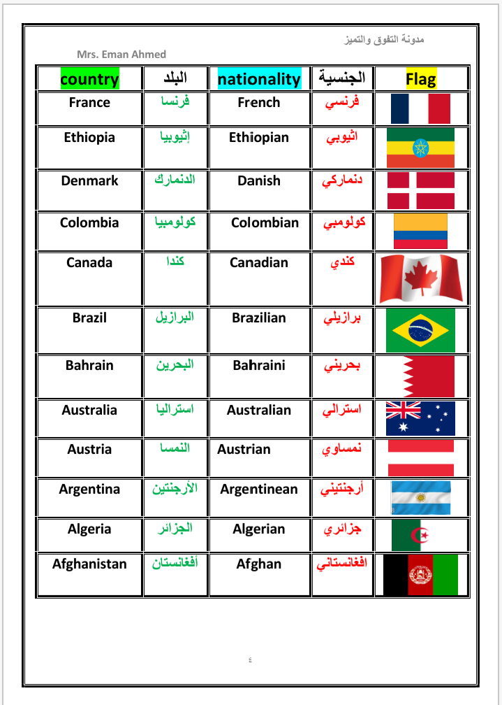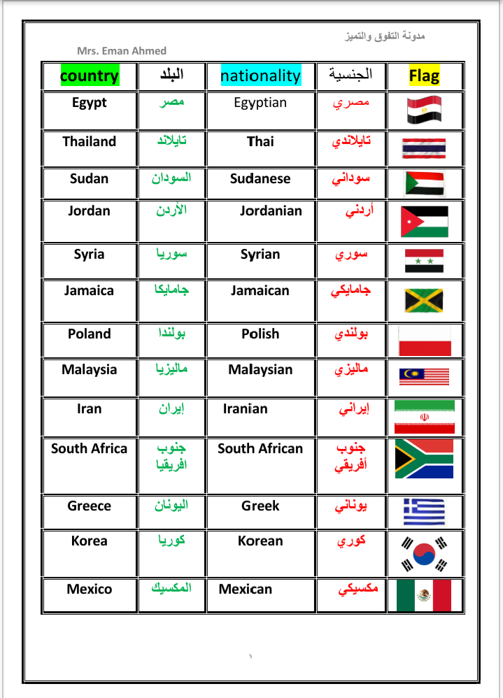 أسماء الدول والجنسيات باللغة الانجليزية Countries And Nationalities التفوق والتميز