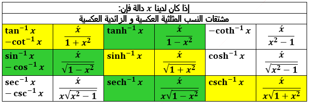 قوانين تفاضل الدوال المثلثية العكسية رياضة 1 و 2 Integral Facebook