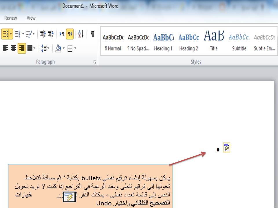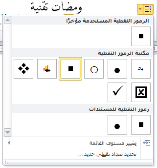 إنشاء قائمة ذات تعداد نقطي أو رقمي Word