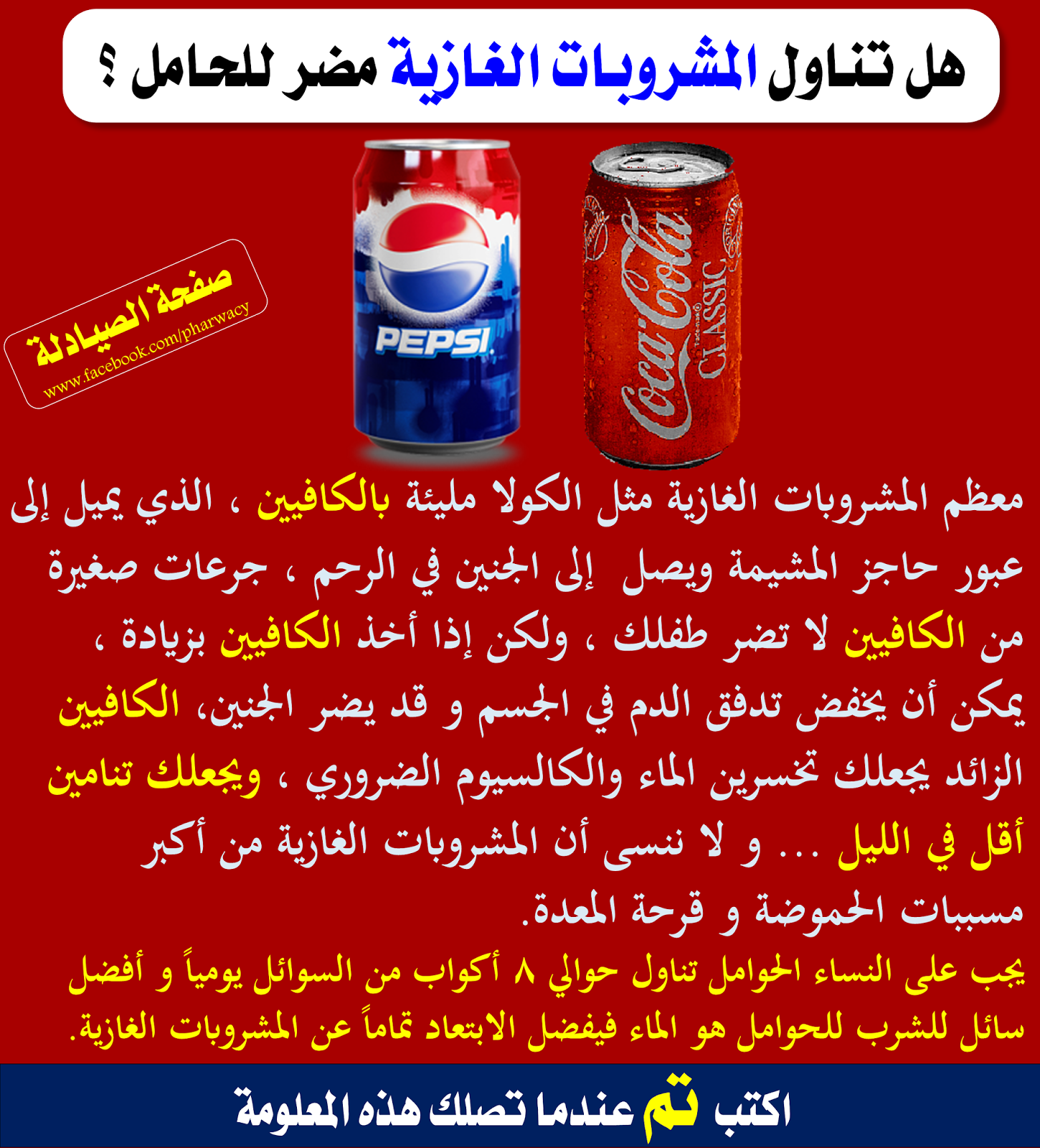 صفحة الدواء هل يمكن أن تسبب المشروبات الغازية مثل الكوكاكولا و البيبسي أي أضرار للمرأة الحامل هل المشروبات الغازية مضرة أثناء الحمل