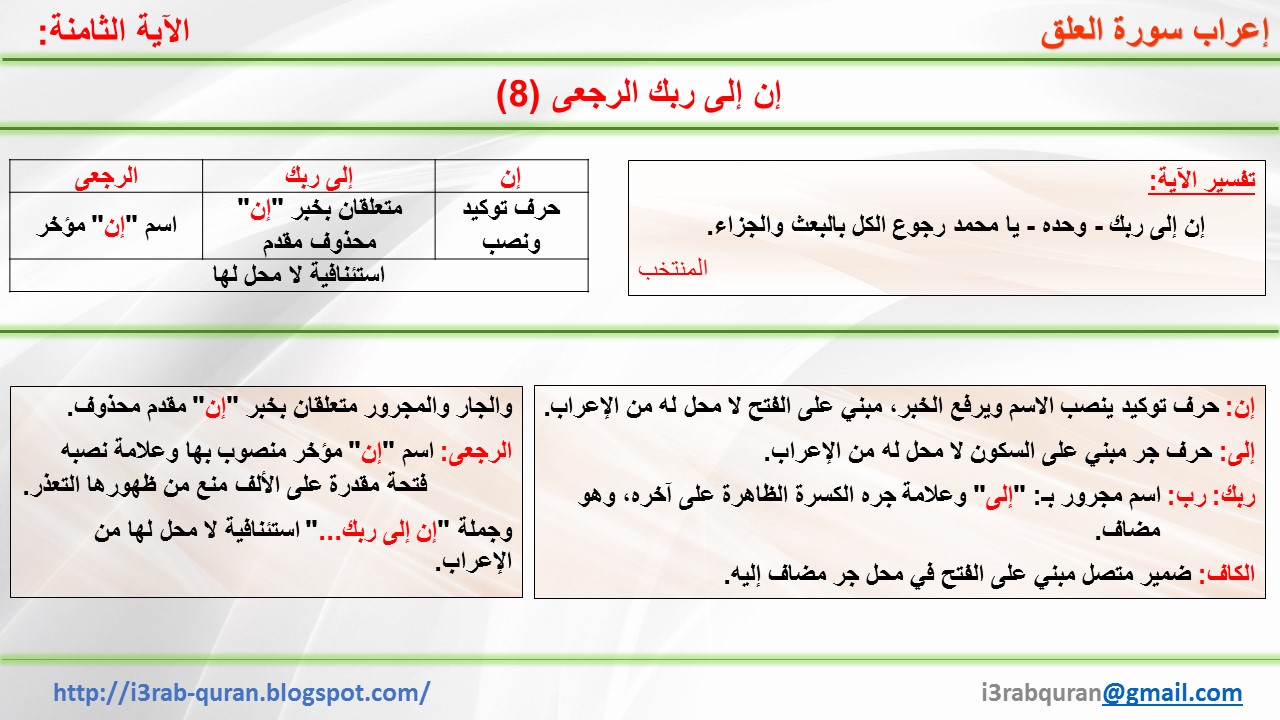 إعراب القرآن الكريم إعراب إن إلى ربك الرجعى