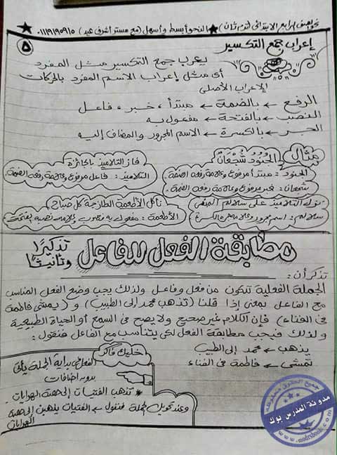 ملخص النحو للصف الرابع الابتدائي في ست ورقات تعلم الاعراب رابعة ابتدائي