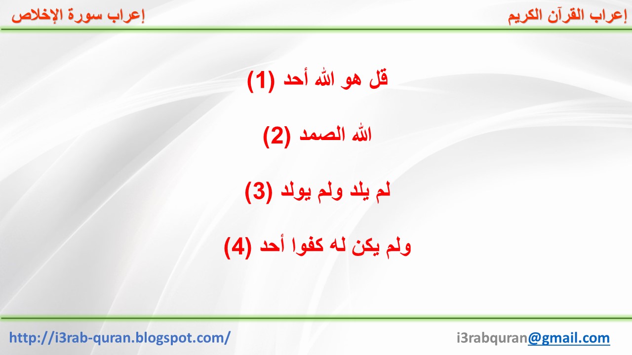 اعراب سورة الاخلاص. سورة الإخلاص هي سورة مكي ة عدد آياتها. إعراب الآيات 1 4. إعراب سورة الإخلاص قل.