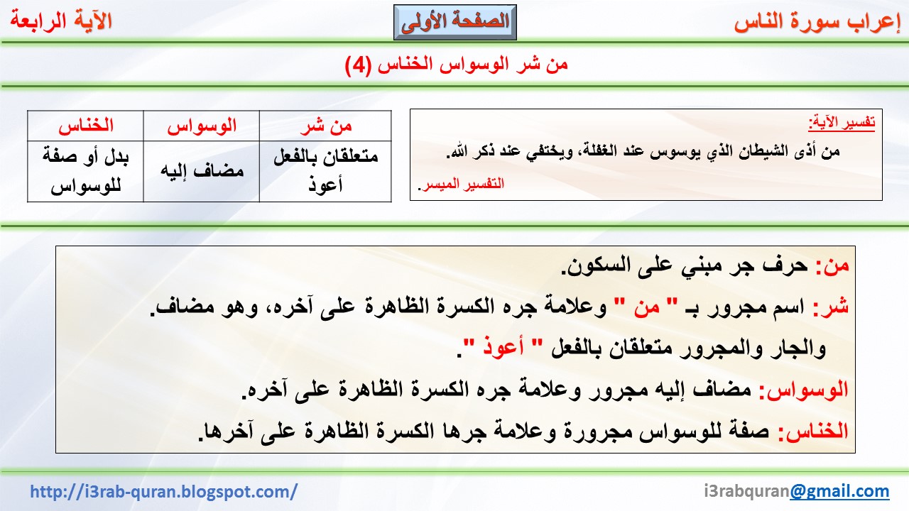 إعراب القرآن الكريم إعراب من شر الوسواس الخناس
