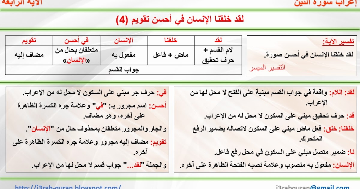 إعراب القرآن الكريم إعراب لقد خلقنا الإنسان في أحسن تقويم