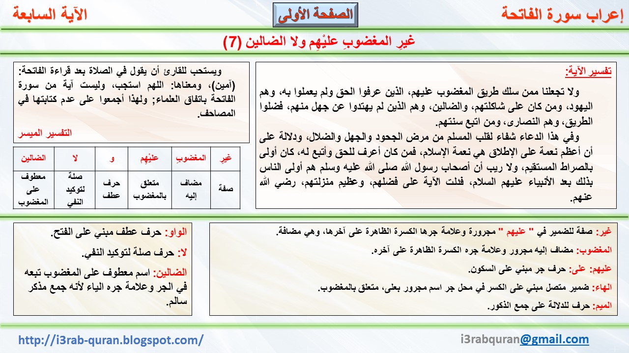 إعراب القرآن الكريم إعراب غير المغضوب علي ه م ولا الضالين 7