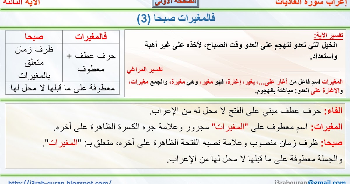 إعراب القرآن الكريم إعراب فالمغيرات صبحا 3