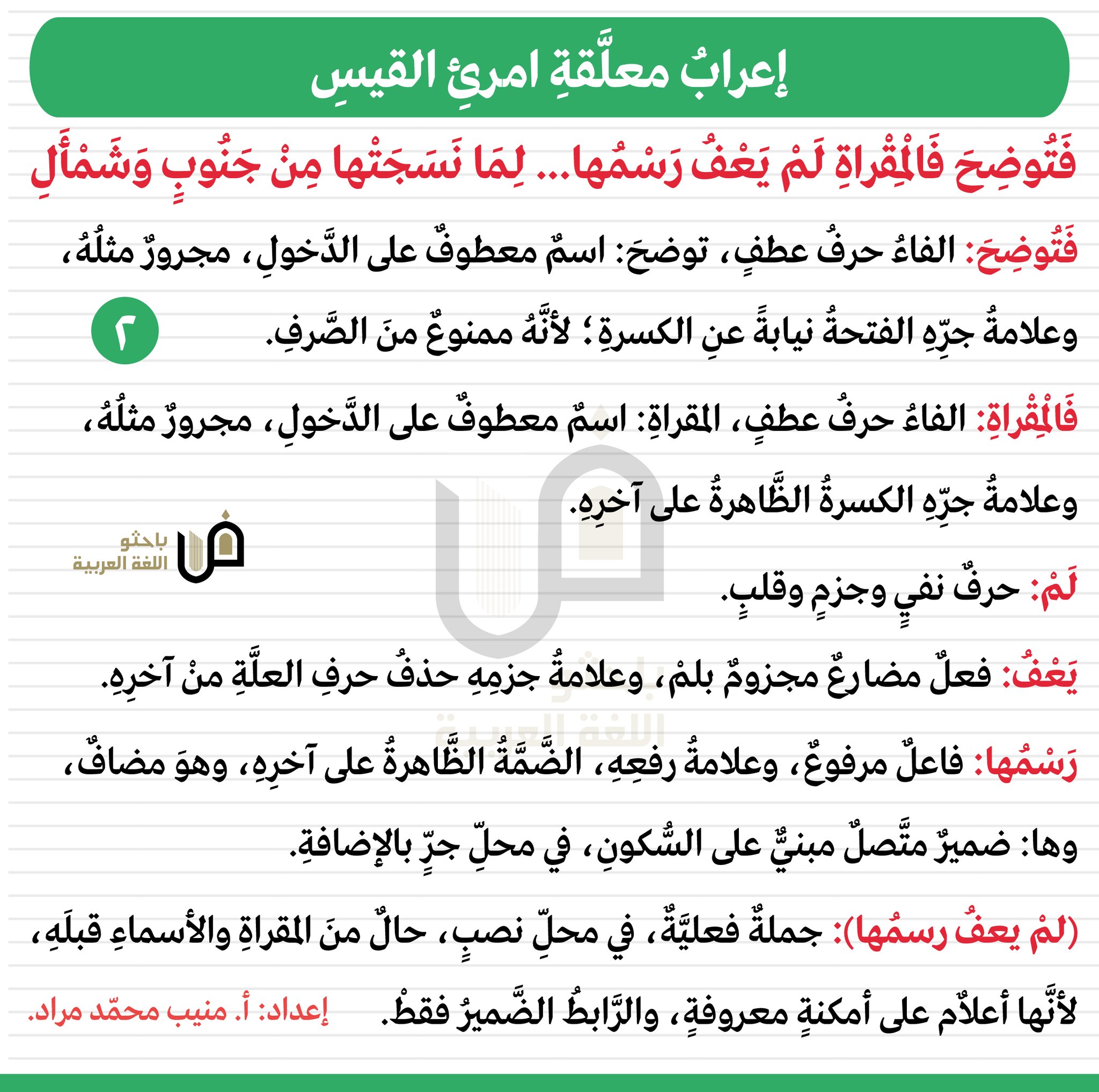 أ منيب محمد مراد Twitterren سلسة إعراب معلقة امرئ القيس البيت الثاني