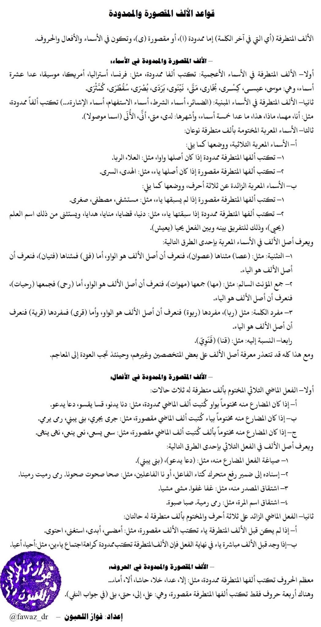فواز اللعبون On Twitter قواعد الألف المقصورة والممدودة Http T Co 0wsk1sy6dr
