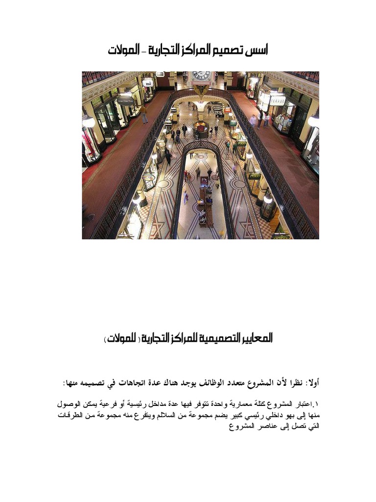 دليلك في التهيئة العمرانية أسس تصميم المجمعات التجارية Pdf